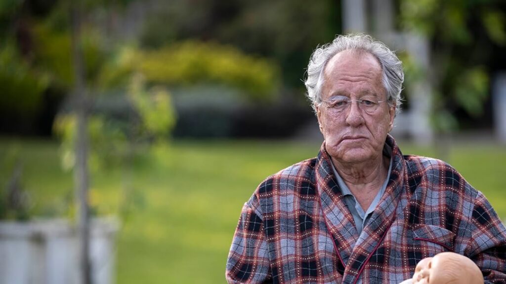 Rush es en La ley de Jenny Pen el implacable juez Stefan Mortensen, que acaba en silla de ruedas ingresado en una residencia donde su primera experiencia es ver cómo un paciente es consumido por las llamas. Dave Crealy, el personaje de Lithgow, está a la altura de otros tipejos que ha interpretado este gran actor nominado dos veces al Oscar (El mundo según Garp y La fuerza del Cariño). Recordemos que Lithgow fue Roger Ailes en Bombshell (2019), Arthur Mitchell en la serie Dexter (2009) y el desquiciado psicólogo de En nombre de Caín (1992). Dave Crealy es un matón que disfruta con el bullying hacia sus compañeros mayores, pero Stefan le planta cara. Baby Jane entre hombres.