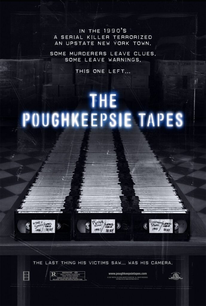 Sótanos lúgubres donde se tortura a inocentes. Cuevas laberínticas donde ocurren cosas espantosas muy alejadas de la luz del día. Catacumbas vigiladas por hombres enormes encapuchados y preferiblemente con un hacha en la mano. Mujeres secuestradas, atadas y filmadas en su sufrimiento. En la serie La novia gitana (2022) aparece una subtrama de snuff movies bastante escalofriante. Tesis (1996) y 8MM (1999) no llegaron tan lejos. Lo peor es que te inquieta y perturba porque te lo crees. Un poco más vemos en The Poughkeepsie Tapes (2007), las cintas encontradas donde se grabaron las “hazañas” de un asesino en serie de lo más terrible. Poughkeepsie es una ciudad real que está en el estado de Nueva York, aunque la película de John Erick Dowdle es un falso documental. En cualquier caso, Poughkeepsie no volverá a ser la misma porque estará asociada a esta cinta de culto.