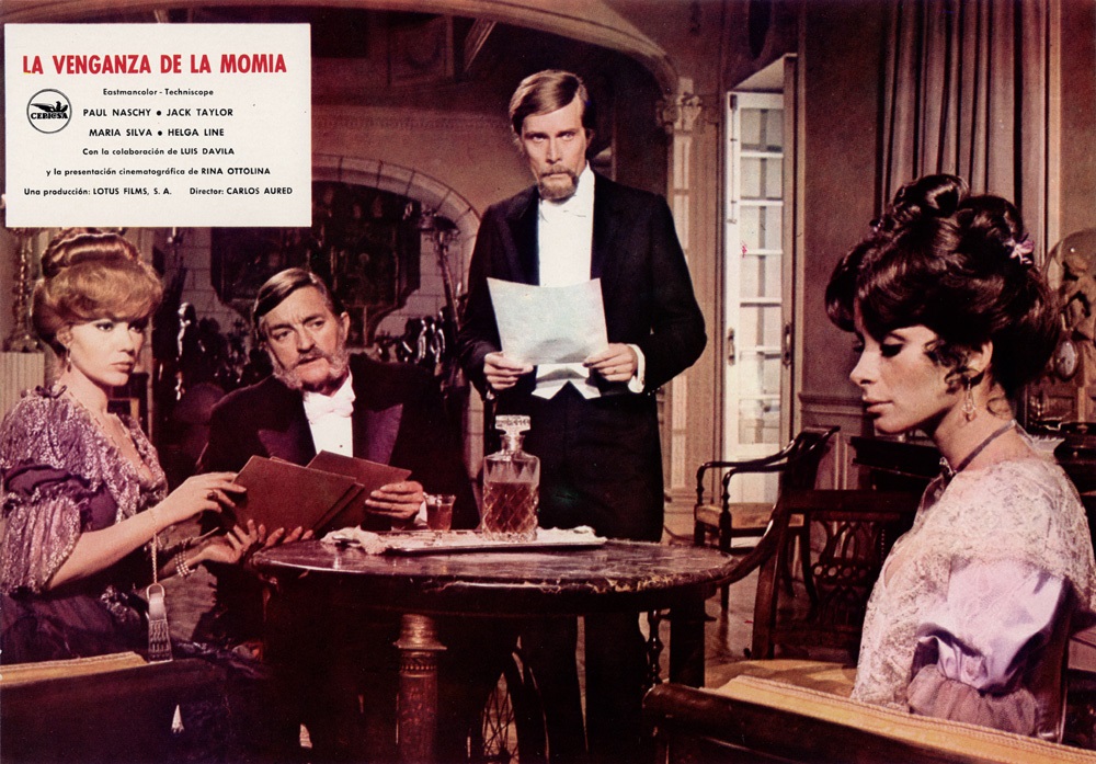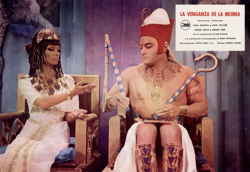 El director de la película era todo un especialista en terrores varios. Carlos Aured es el responsable de El espanto surge de la tumba (1973), El retorno de Walpurgis (1973) o Los fríos senderos del crimen (1974). Pero la película es de Paul Naschy, ese mito del cine de terror español que como tantas figuras legendarias de nuestro cine soñaba con un Goya de Honor y nunca se lo dieron. Naschy (Jacinto Molina) como guionista se reservó dos personajes, Amenhotep y Assad Bey, el misterioso extranjero que llega desde Egipto a Londres acompañado de la inquietante Zanufer (Helga Liné).