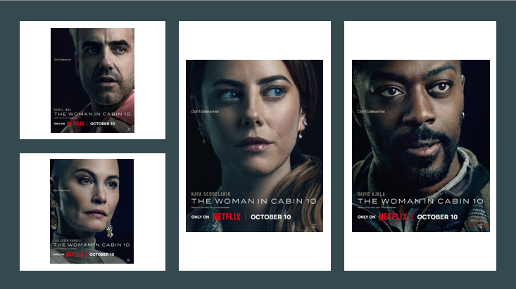 La trama de La mujer del camarote 10 (The Woman in Cabin 10) se plantea como un Cluedo, con varios pasajeros / sospechosos y con la protagonista sin perder nunca la sensación de que no se puede fiar de nadie en el barco. Los invitados son «gente que domina el mundo o queda a comer con quienes lo dominan», como dicen en la película. Está el millonario, su mujer enferma, un ex novio de la protagonista, una antipática galerista (interpretada por esa fuerza de la naturaleza llamada Hannah Waddingham) y un doctor de lo más inquietante.