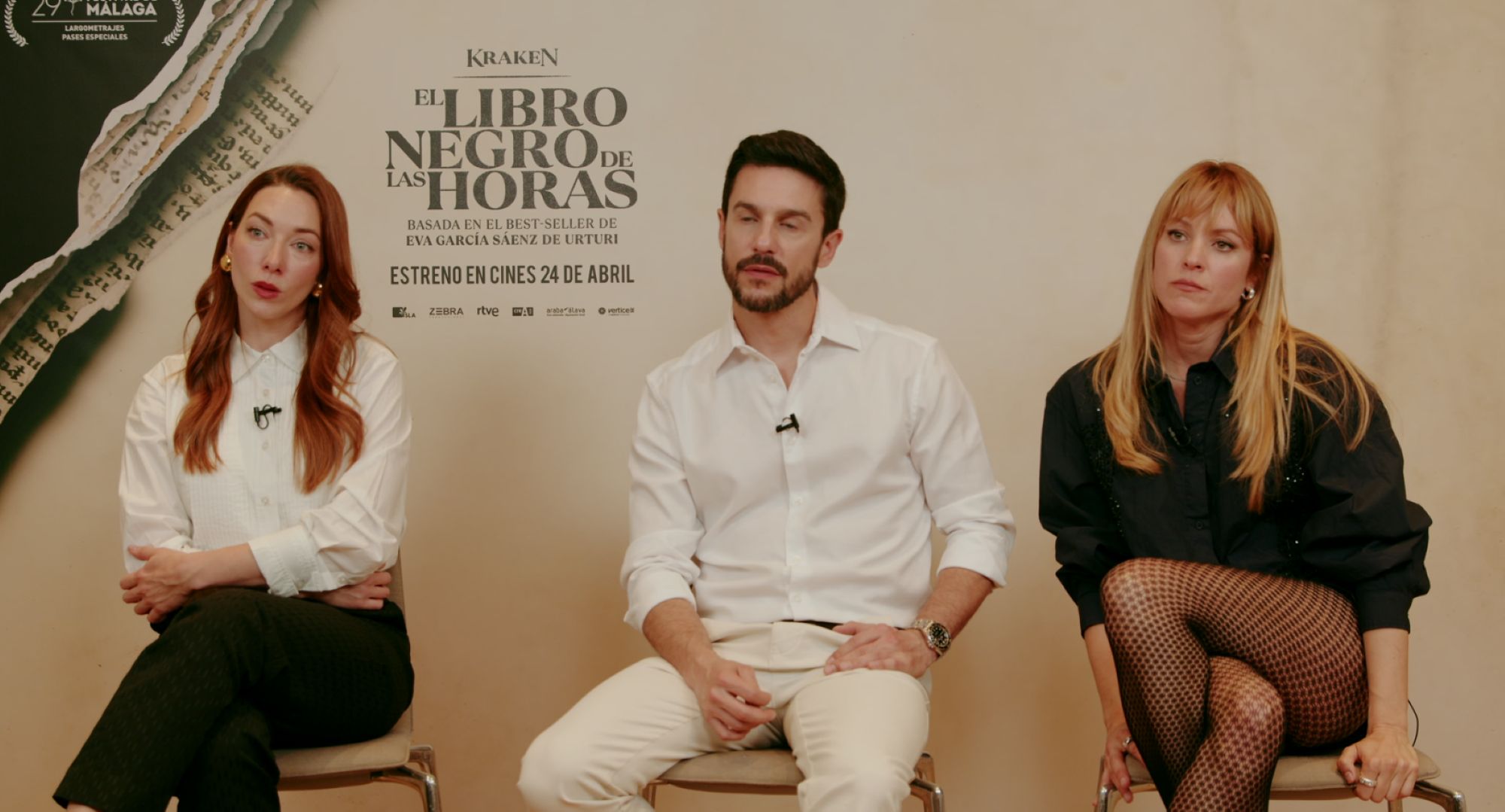 Cinerama estuvo con los directores y todo el reparto para hablar del vértigo que puede provocar llevar al cine un best-seller con millones de fans, sobre la participación en el proyecto de la escritora, sobre el homenaje al mundo de los libros que propone la intriga en una película que empieza precisamente con uno que literalmente explota, sobre los claros referentes a El nombre de la rosa (1986) y La novena puerta (1999), por nombrar dos, y sobre cómo se reproducen en la ficción libros antiguos como este El libro negro de las horas que escribió Constanza de Navarra (1344 – 1363).