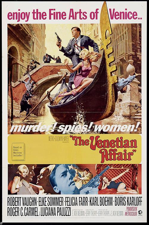 También para una cinta de acción y espionaje, porque sus canales y callejuelas son perfectas para esconderte y sorprender al rival. Ahí está la deliciosa Intriga en Venecia (The Venetian Affair) (1966), cine de barrio para sesiones dobles con Robert Vaughn y Elke Sommer. En ese sentido, la mejor historia salió de Patricia Highsmith en la novela El juego del escondite (Those Who Walk Away) (1967), un fascinante relato de misterio que es de lo mejor que se ha escrito sobre Venecia y que sorprendente nadie ha llevado al cine todavía.