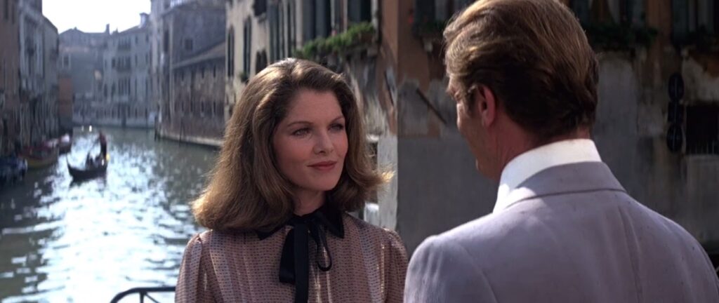 En Moonraker (1979) todo es más divertido, dentro de lo que cabe. James Bond (Roger Moore) se encuentra en Venecia con la agente de la CIA Holly Goodhead (Lois Chiles), una tipa que resulta ser más lista que él. Como es habitual, hay una persecución en góndolas y un buen jaleo en la plaza de San Marcos.